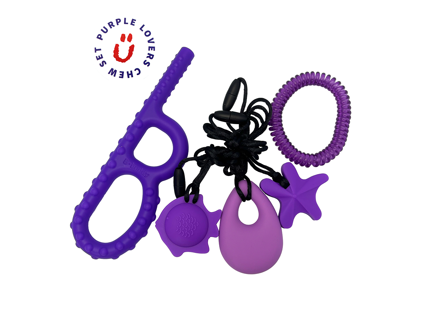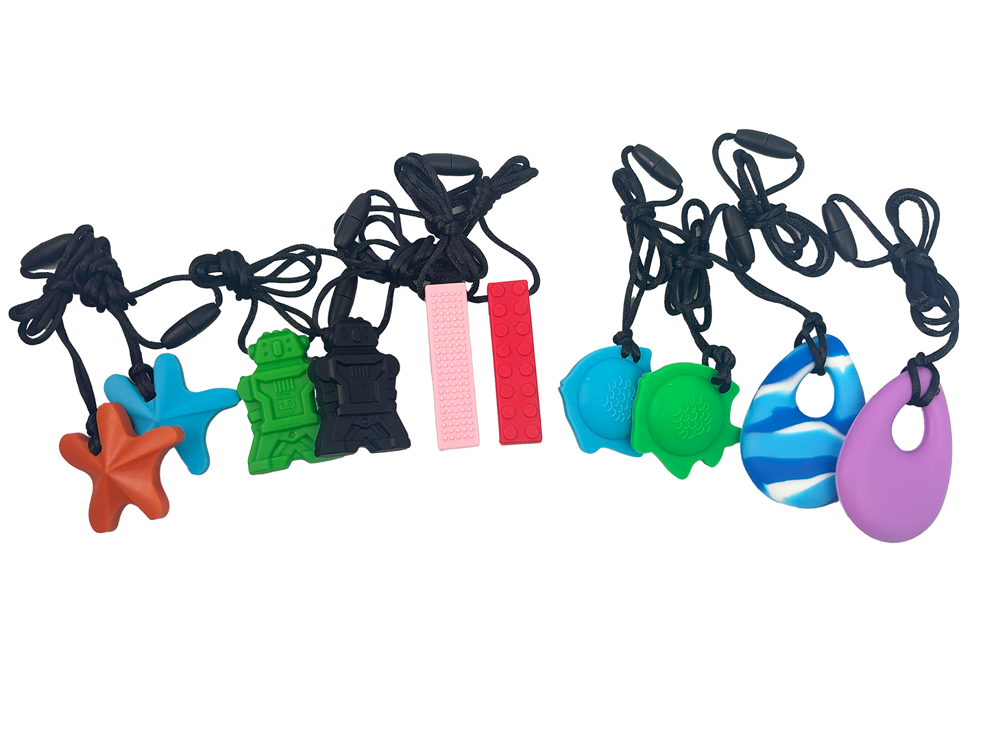 Explore our full collection of Chew Buddy chewable pendants, designed for comfortable, wearable sensory support. Available in a variety of shapes, colors, and textures, they’re perfect for everyday use. To get more information click below